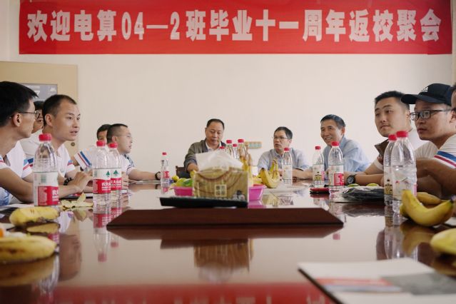 10月2日,在这举国欢庆的日子里,我院电算04-2班20位校友齐聚母校,忆往昔风华岁月,看今朝共享荣光。学院党总支书记刘选民,电算04-2班主任周永臣及部分授课教师参加了校友返校联谊活动。