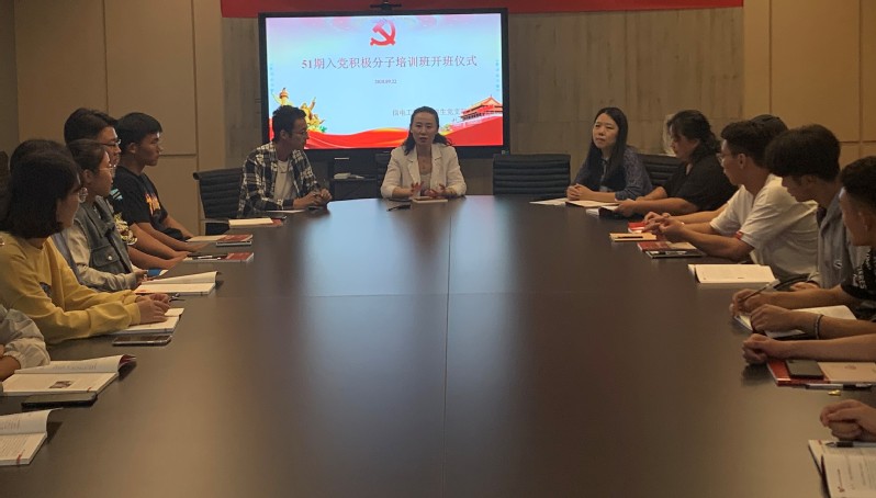 9月22号下午,金沙集团wwW3354CC学生党支部举行51期入党积极分子培训班开班仪式。学院白金一书记、郑孝闽子老师、 姜泰迪老师、王磊老师及本期入党积极分子参加此次开班仪式。