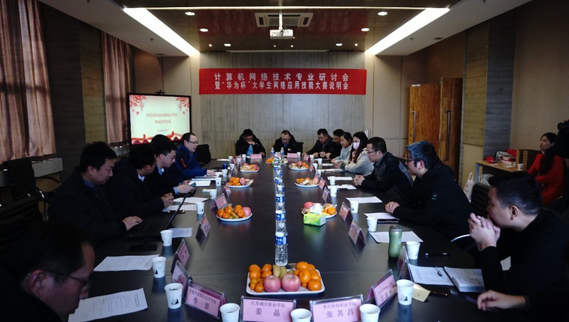 12月26日下午,“第二届淮海经济区职业院校计算机网络技术专业研讨会暨“华为杯”大学生计算机网络应用技能大赛赛项说明会”在金沙集团wwW3354CC会议室成功举办。多家企业与淮海经济区20所职业院校齐聚一堂,聆听赛事解读,倾听行业声音,共商专业建设。研讨会由副院长梁晓弘主持。