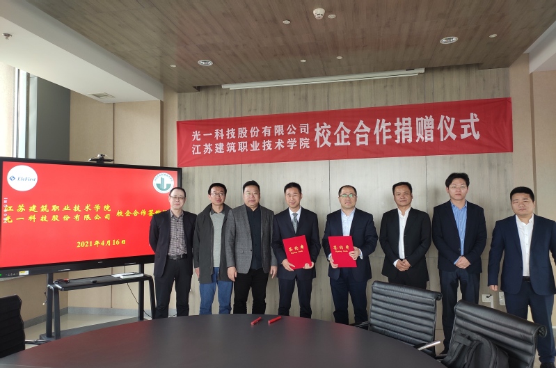 随后,校企双方签署了战略合作协议,刘海波为光一科技股份有限公司颁发了设备捐赠证书,并合影留念。